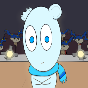 Popo is a small blue character that loves cute things. He is adventurous and curious, but also clumsy and forgetful. Recently, Popo’s love of adventure has led him to move abroad and start a whole new life. Now Popo lives in an apartment with his friends Fred, Boogie, and his pet sea cucumber Zuki. With their help Popo is learning about a whole new country. With its strange cultures and mysterious languages, what kind of thing will Popo experience next?